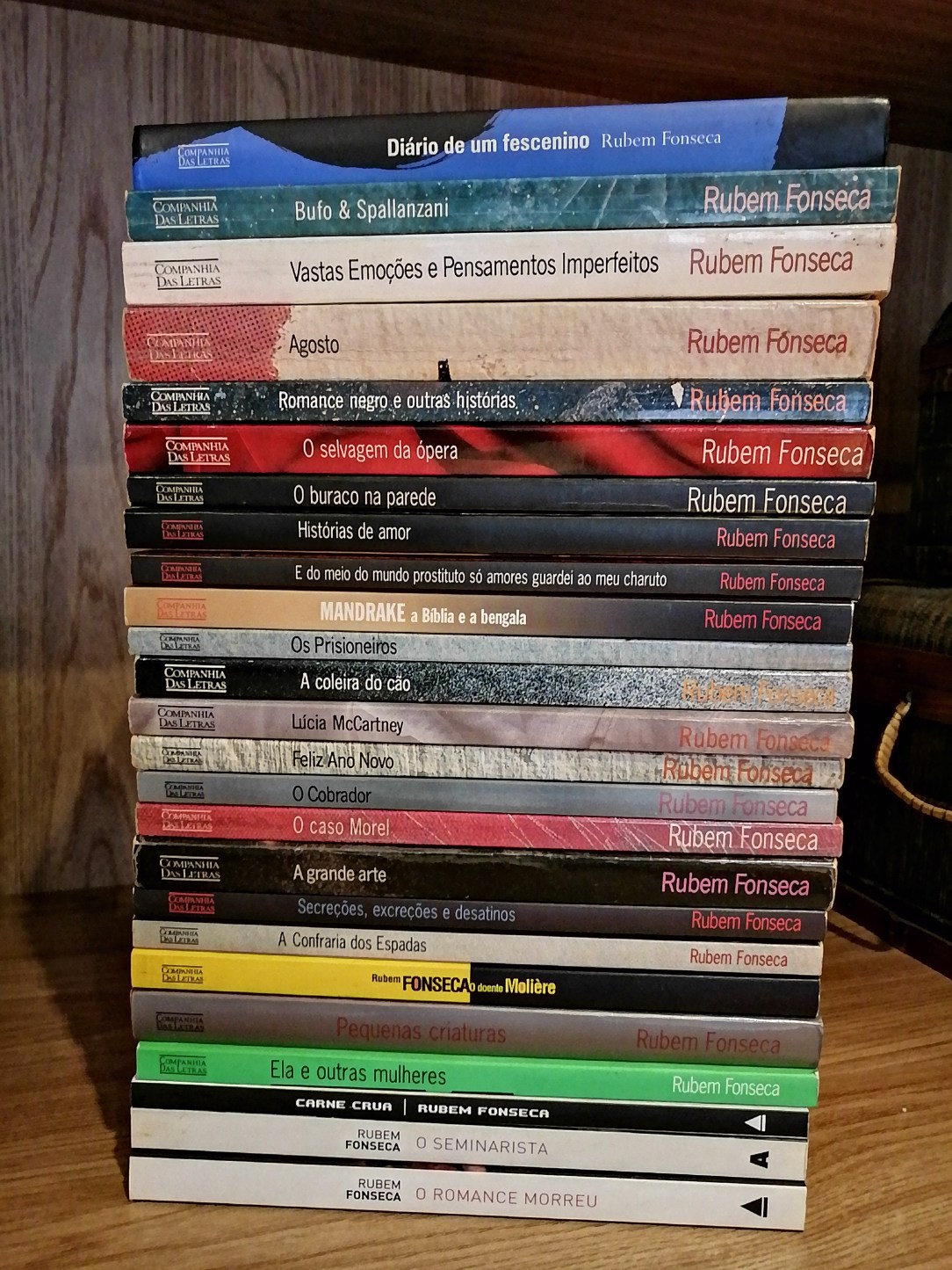 O buraco na parede, contos, 1995. A coleira do cão, contos, 1965. Agosto, romance, 1990. Vastas emoções e pensamentos imperfeitos, romance, 1988. Feliz Ano Novo, contos, 1975. Histórias de amor, contos, 1997. O Cobrador, contos, 1979. Bufo & Spallanzani, romance, 1986. E do meio do mundo prostituto só amores guardei ao meu charuto, romance, 1997.